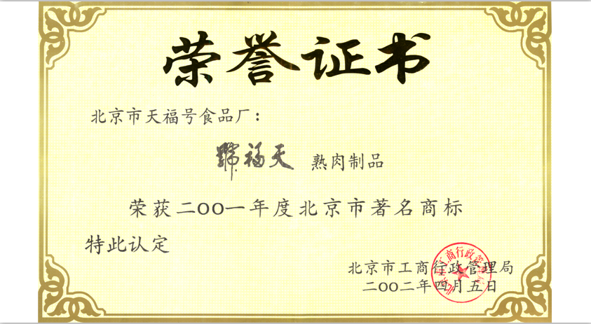 2001年北京市著名商標
